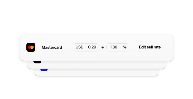 Set margins and rates by customer segment, individual customer, or payment method. Customise fees for specific credit card providers to avoid high buffers and keep pricing competitive.